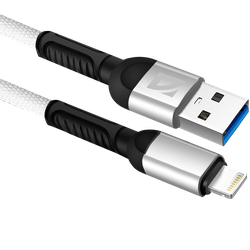 Кабель для устройств с разъемом подключения Lightning. Износостойкая тканевая нейлоновая оплетка и коннекторы из авиационного алюминия с защитой от залома кабеля.