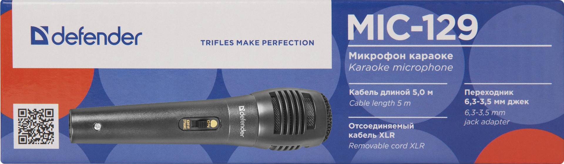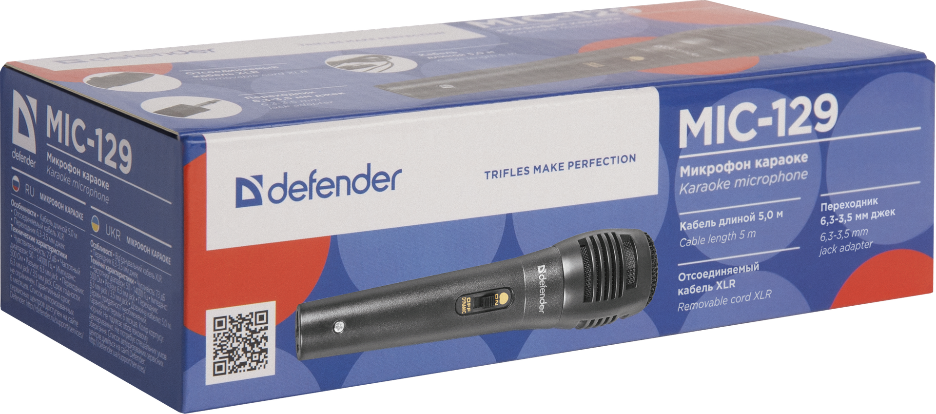 Микрофон караоке Defender MIC-129 черный, кабель 5 м
